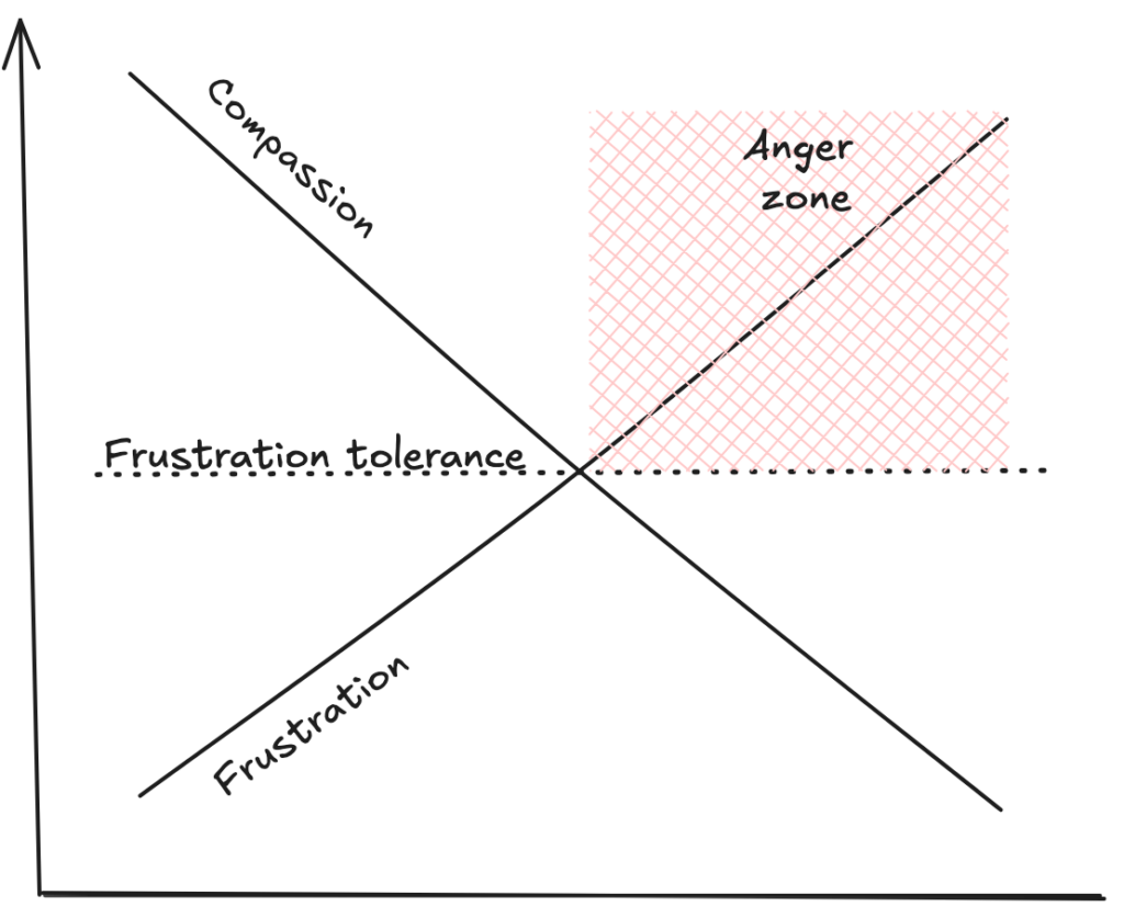 It just tells the group: “I am fed up with this and don’t have the capacity to deal with it. You have to figure it out how to improve the situation.” So, if we get angry, we internally release ourselves from the responsibility and with that also give away our power to change the situation. This power is with the other people now, the over-worked crowd.